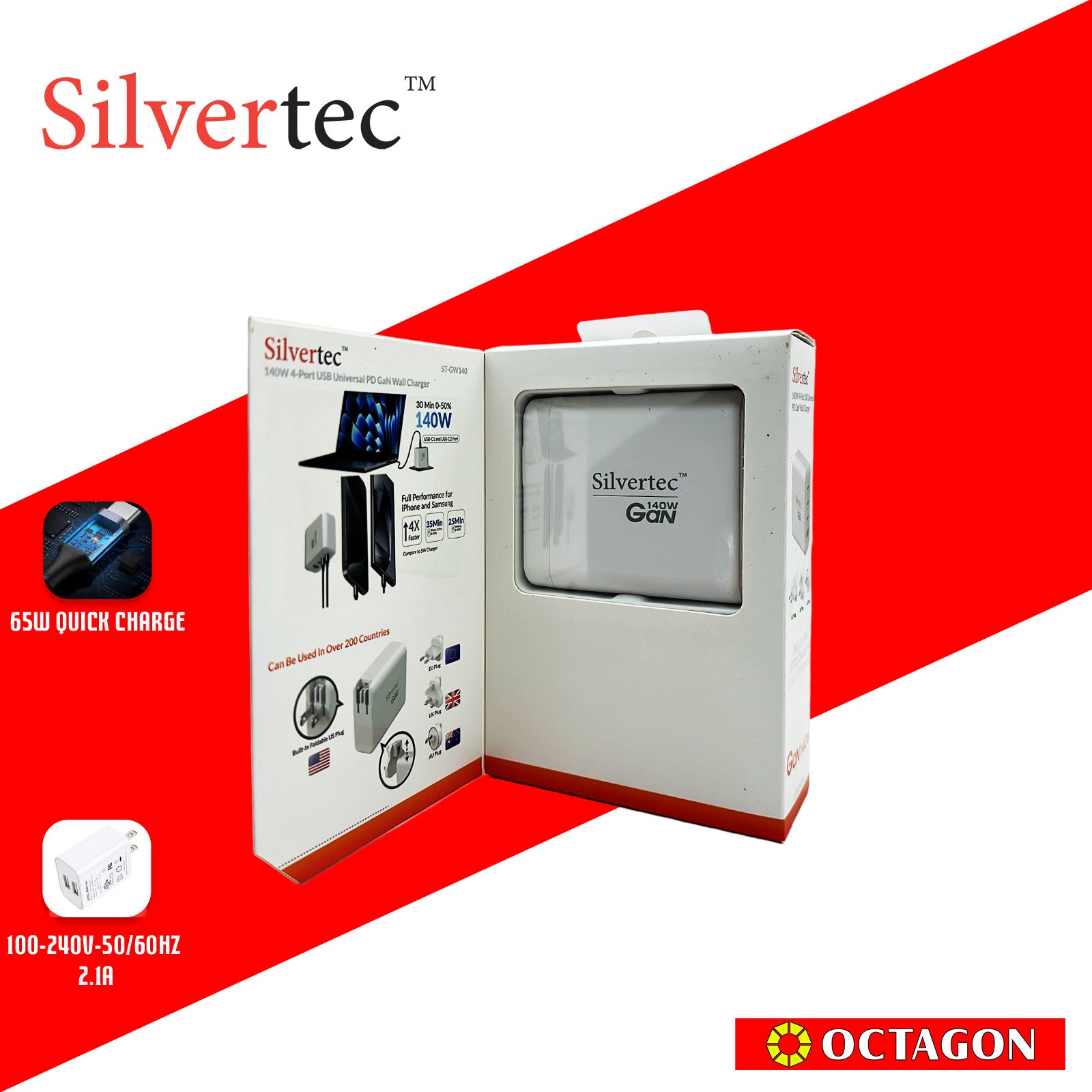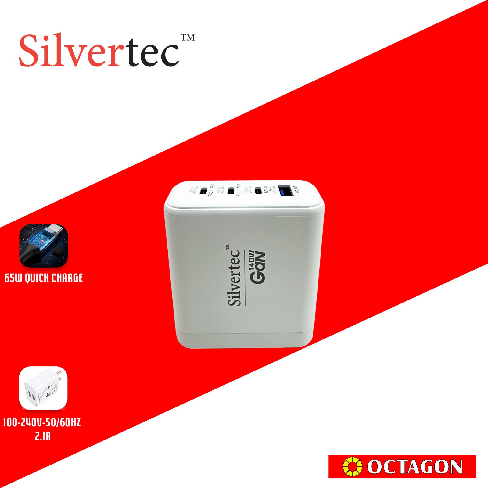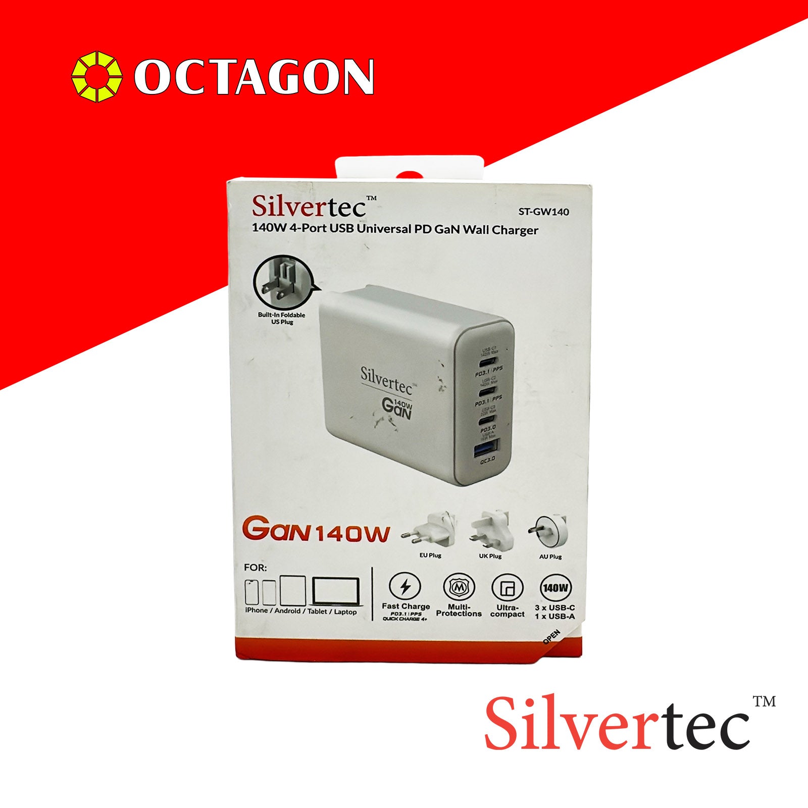 SILVERTEC ST-GW140-WH 140W 4-PORT USB UNIVERSAL PD GAN WALL CHARGER WHITE (3 PD / 1 QC)